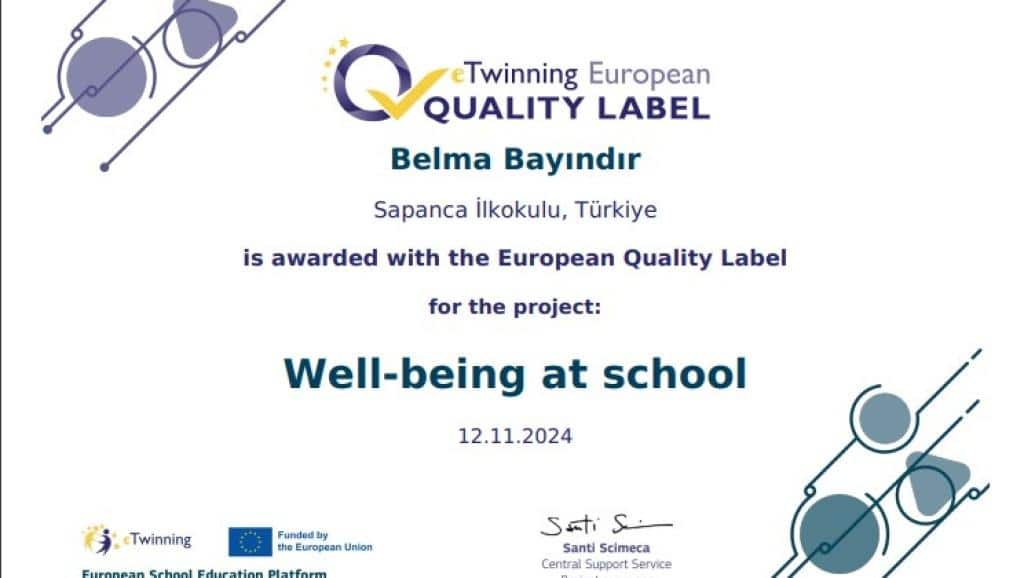 Okulumuz 4/E Sınıfı öğretmeni Belma BAYINDIR geçen sene sınıfıyla yürüttüğü 2 Uluslararası Etwinning projesine Ulusal Kalite Etiketi aldıktan sonra şimdi de Avrupa Kalite Etiketi aldı.